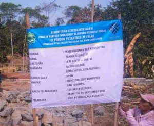 Untuk diketahui, informasi pada papan informasi tersebut bertuliskan Kementerian Ketenagakerjaan RI, Kegiatan Bantuan Workshop Kejuruan Otomotif Ringan di Pondok Pesantren Al Falah Kp Sukajadi RT001/002 Ds Mekarsari Kec Maja Lebak Banten, nama Kegiatan Pembangunan BLK Komunitas, Bidang Teknik Otomotif, Luas Tanah 19 M X 14 M, Anggaran Rp 500.000.000, Sumber Dana APBN, Manfaat Mencetak SDM Kompeten dan Terampil, Waktu Pelaksanaan 120 Hari Kalender, sejak tanggal 05 September 2003. (Aris Rj)