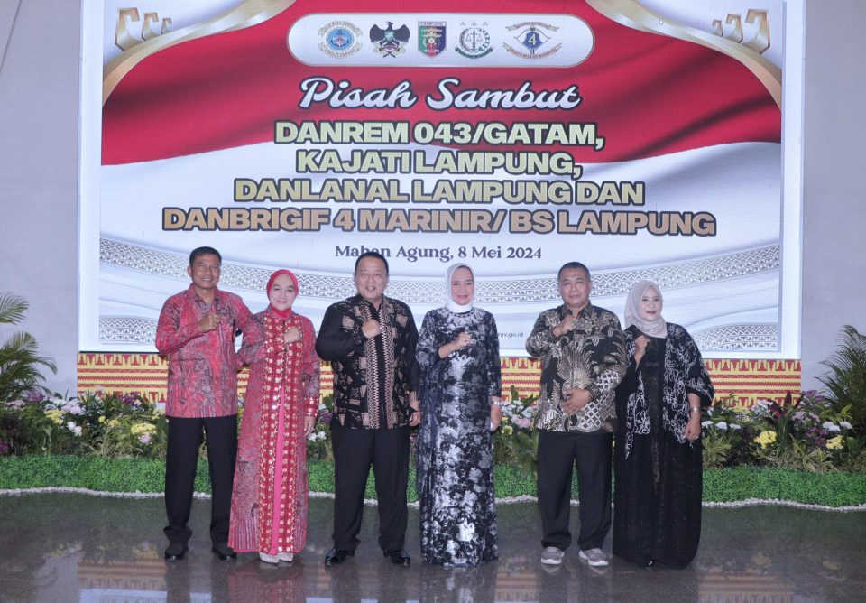 “Penghargaan tersebut diberikan sebagai bentuk apresiasi dan ucapan terimakasih atas dedikasinya selama ini, turut mendukung pembangunan di Provinsi Lampung, dengan melaksanakan peran dan bertanggung jawab sesuai dengan tugas dan fungsi dengan baik dan optimal,” ucap Gubernur saat menghadiri kegiatan Pisah Sambut Danrem 043/Gatam, Kajati Lampung, Danlanal Lampung, serta Danbrigif 4 Marinir, di Mahan Agung, Rabu (08/05/2024).
