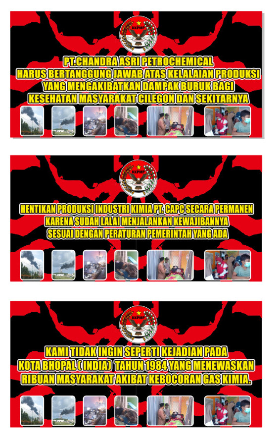 Berdasarkan Pernyataan dewan pakar KKPMP Provinsi Banten Arwan, Aksi demo pada 31 Januari nanti di depan gerbang PT. Candra Asri akan melibatkan 2000 anggota Ormas KKPMP, sebagai tindakan solidaritas dan tuntutan terhadap perusahaan untuk bertanggung jawab penuh terhadap kejahatan kemanusiaan yang tidak dapat ditolerir. (Hadi)