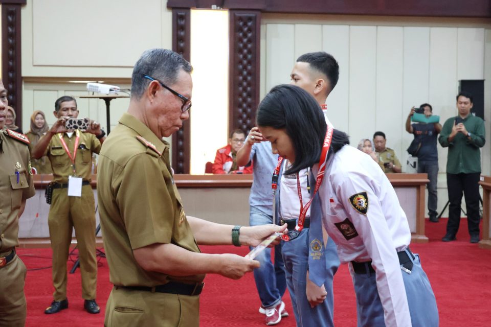 Peresmian seleksi calon Anggota Paskibraka Provinsi Lampung tahun 2024 ditandai dengan penyematan Tanda Peserta seleksi calon anggota Paskibraka Provinsi Lampung Tahun 2024 kepada dua perwakilan peserta oleh Sekdaprov Lampung Fahrizal Darminto didampingi Kepala Dinas Pemuda dan Olah raga Provinsi Lampung Descatama Paksi Moeda dan Kepala Badan Kesbangpol Provinsi Lampung yang diwakili oleh Sekretaris Badan Kesbangpol Provinsi Lampung Herman Saleh. (Dinas Kominfo dan Statistik Provinsi Lampung).